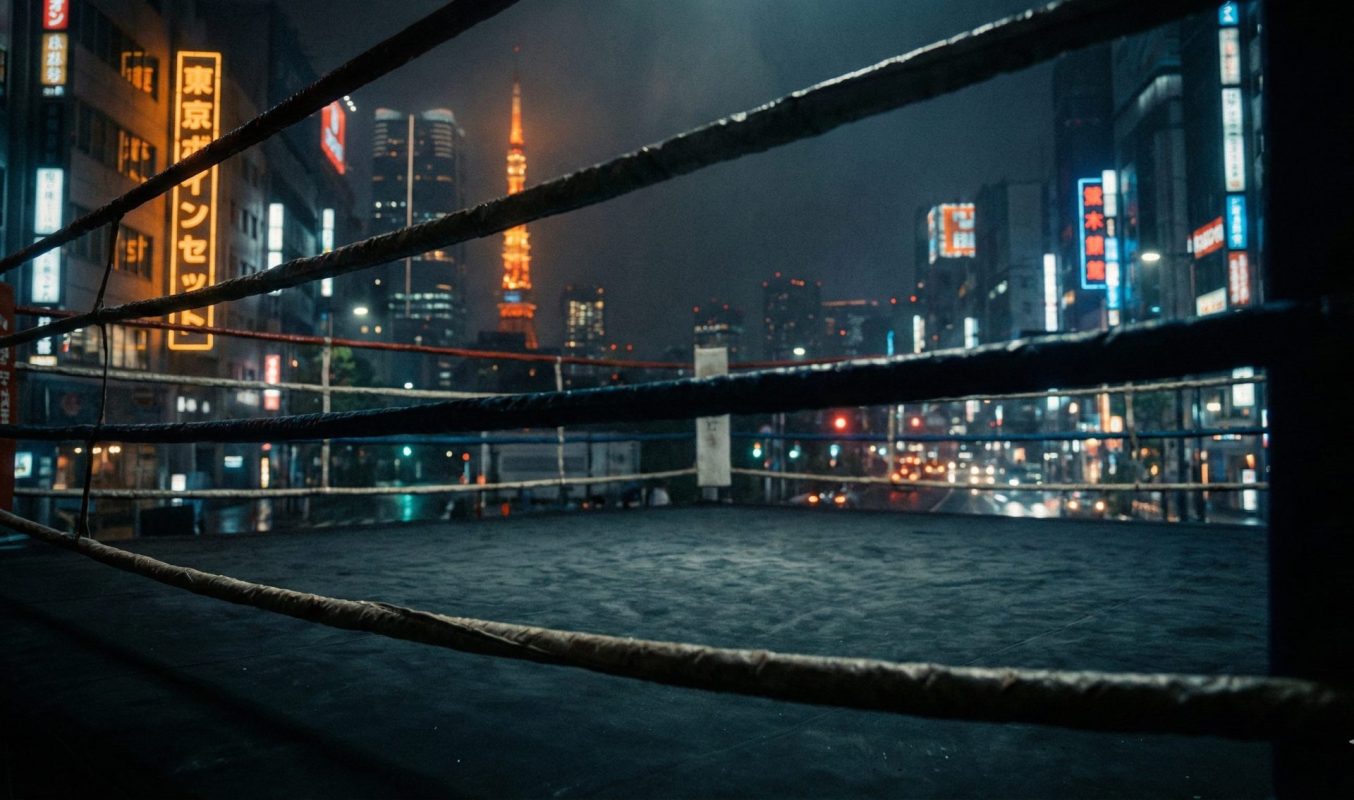 Ring de boxe professionnel à Tokyo éclairé la nuit - Entraînement élite