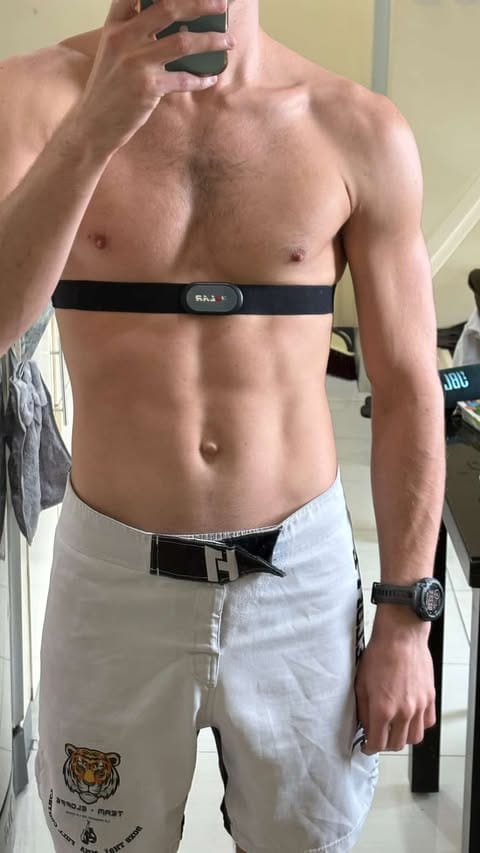 Sur une accélération brutale (sac de frappe 3 rounds), la montre met 10 à 20 secondes à afficher la vraie montée cardiaque. Normale pour l’optique — pas acceptable pour l’interval training.
