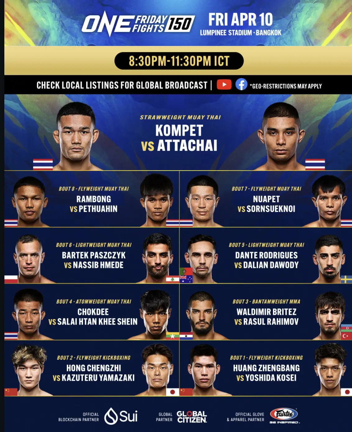 Revanche explosive pour le titre intérimaire flyweight kickboxing. Lors de leur premier affrontement à ONE 172 (mars 2025), Rodtang a mis KO Takeru en 80 secondes d’un crochet gauche dévastateur. Takeru revient avec une victoire par TKO R2 sur Denis Puric à ONE 173. Ce combat sera le dernier de la carrière de Takeru — rédemption ou adieu amer.